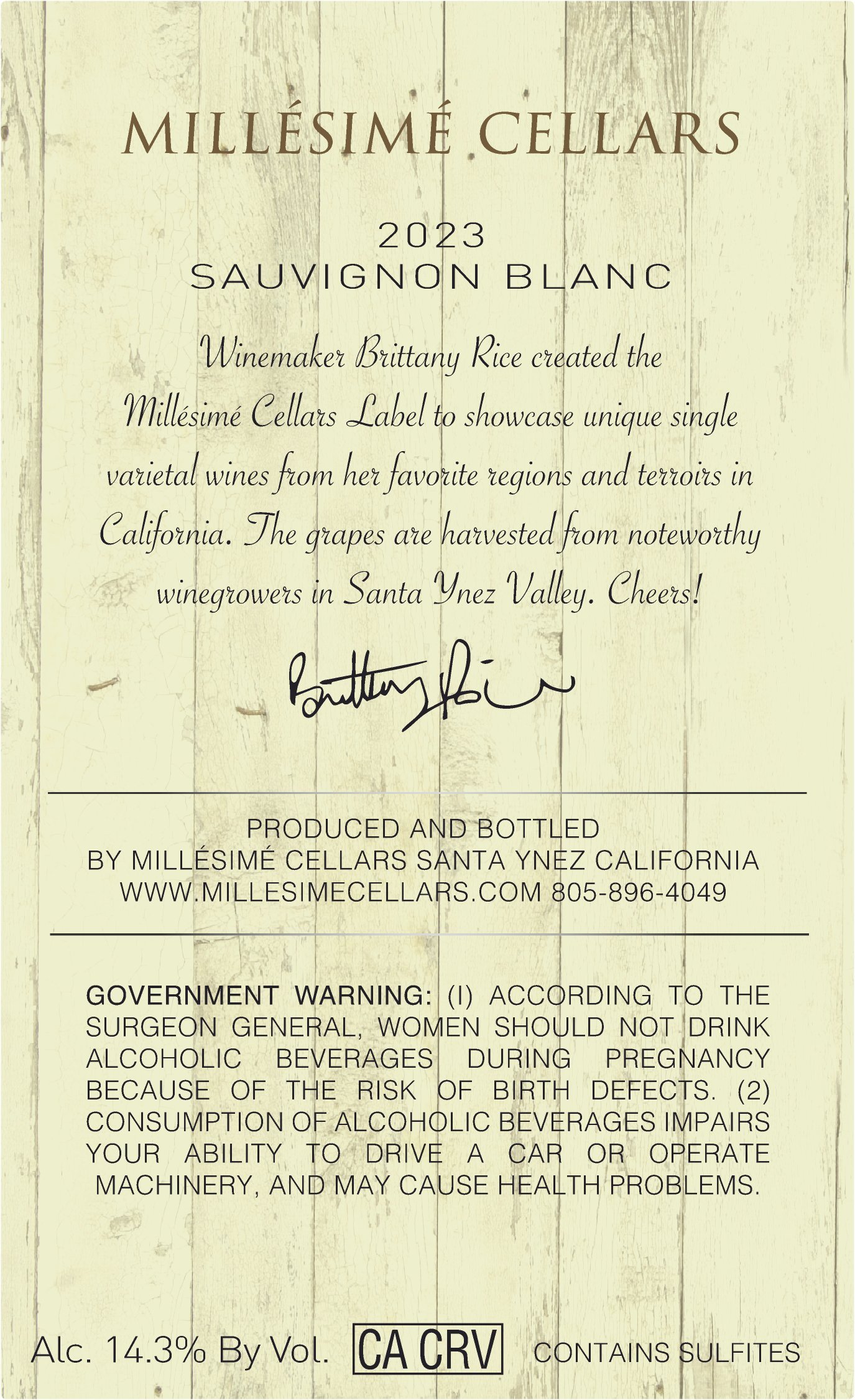 Millesime Cellars –2023 Sauvignon Blanc